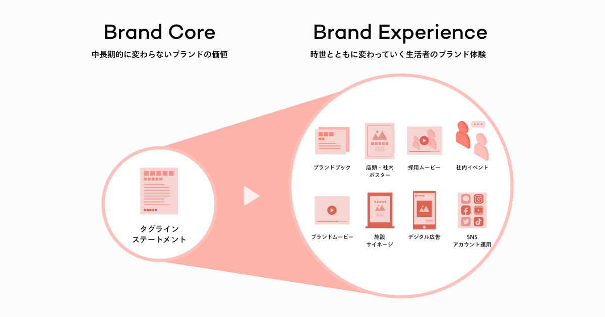 ワークショップを実施してブランドの価値を発見・言語化し、タグライン・ステートメントを開発。最適な媒体に最適なカタチで展開し、生活者とのコミュニケーションのPDCAを回します。