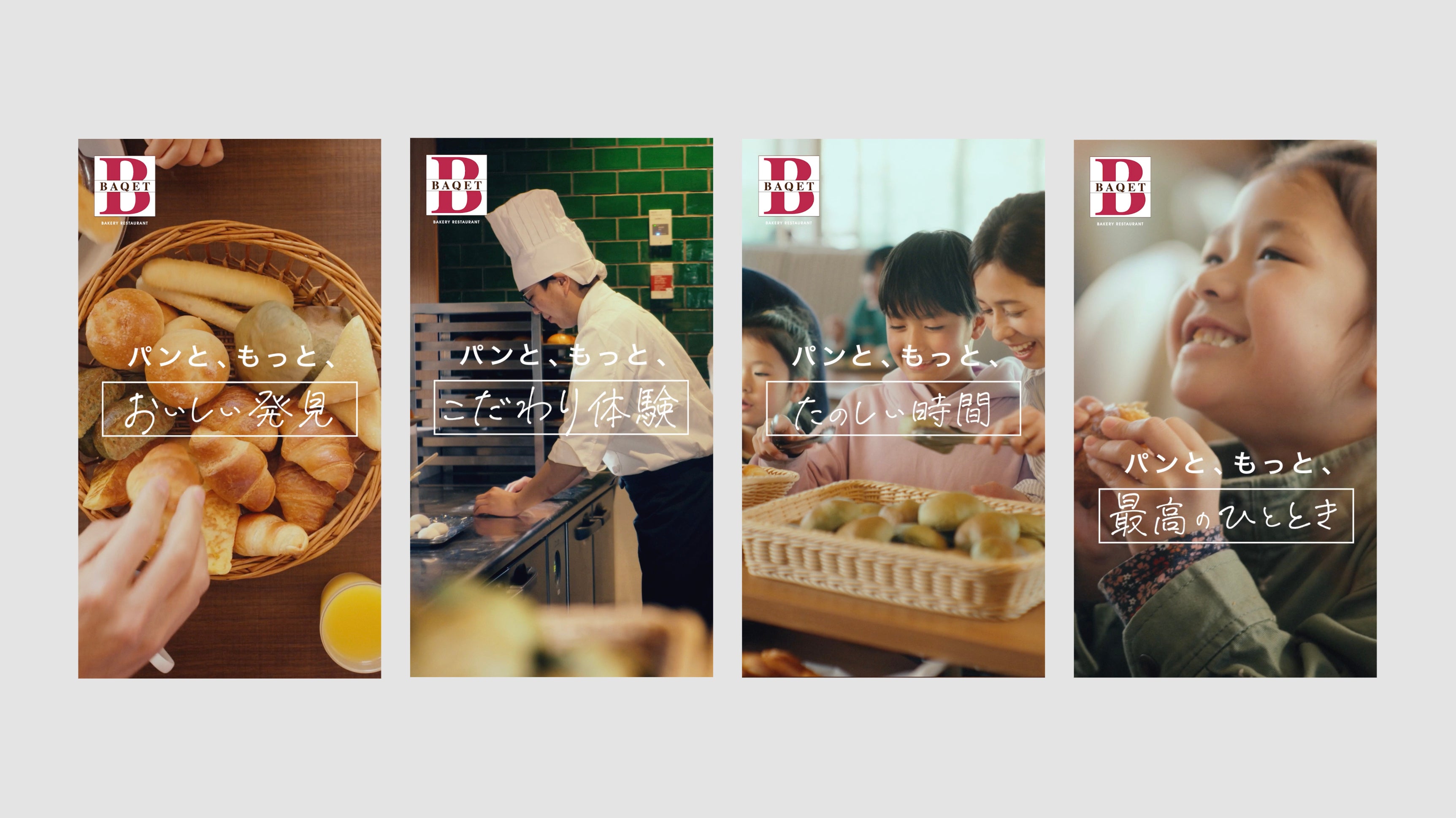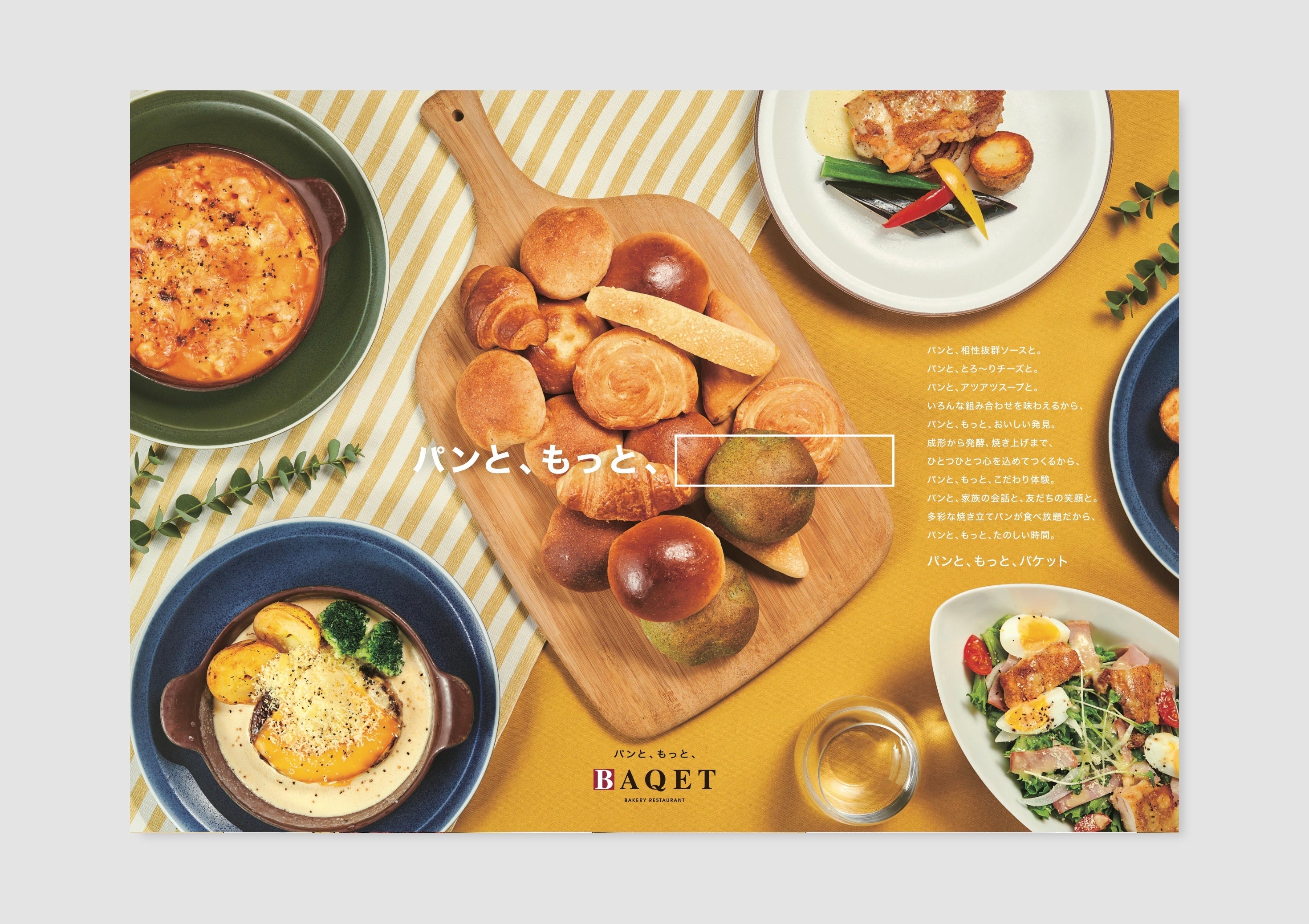 「ベーカリーレストラン バケット」のタグライン・ステートメントを記したブランドイメージ。