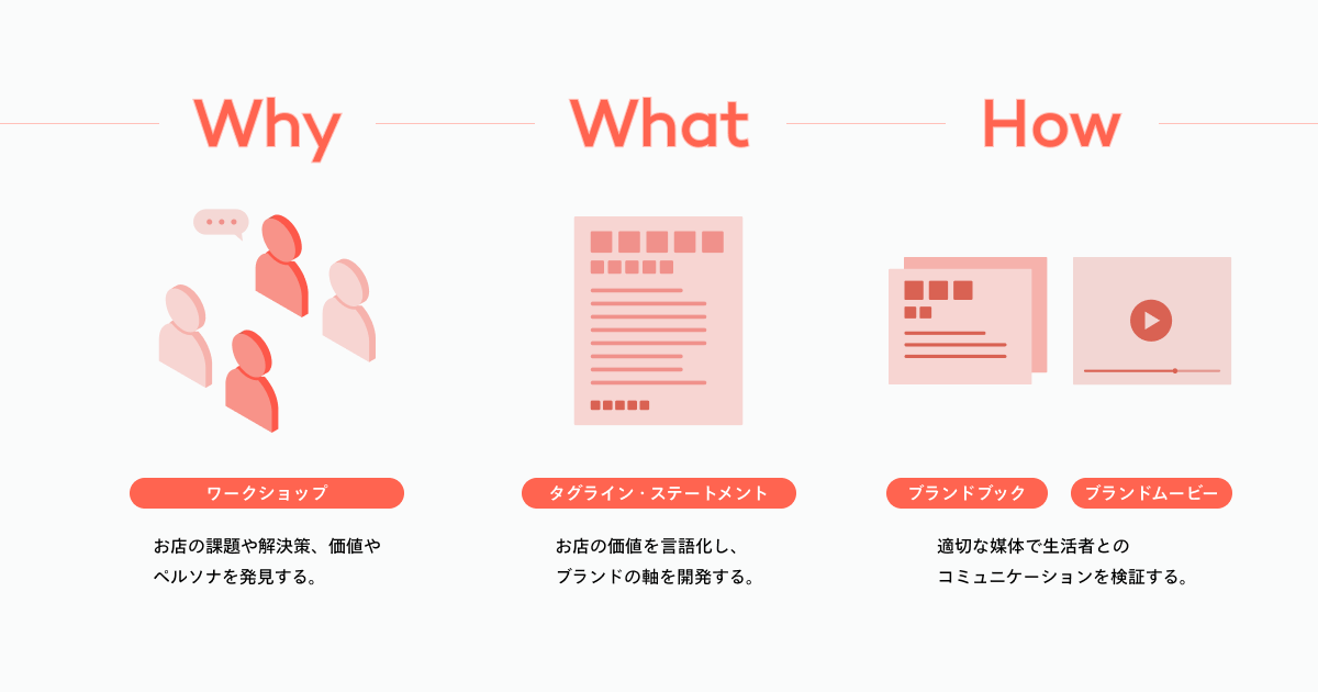 ワークショップで発見した価値からタグライン・ステートメントを開発し、インナーからアウターブランディングまで実施しました。