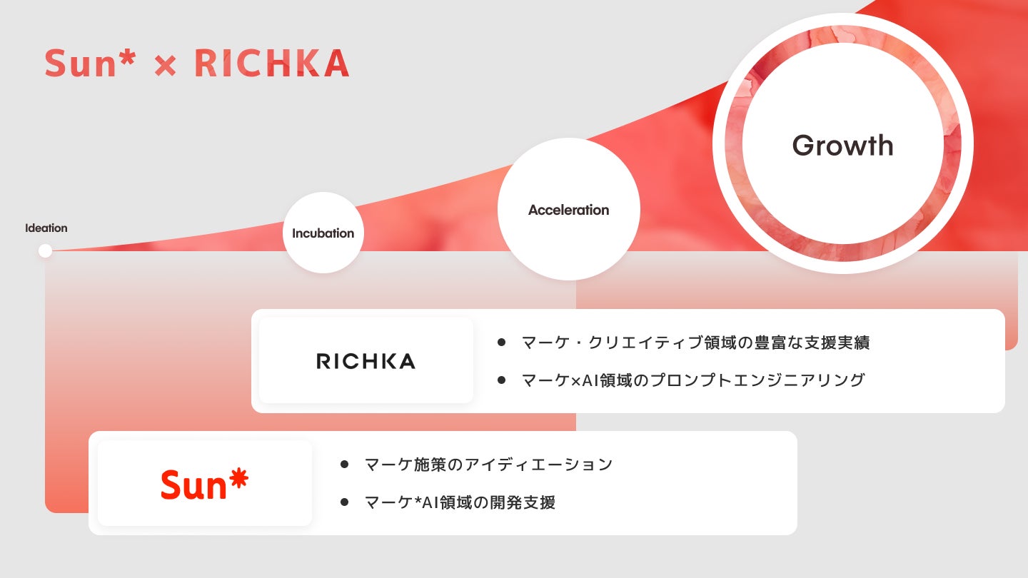 この取り組みのみならず、Sun*がビジネスデザインや開発の支援を行うクライアント企業に対して、リチカ社とタッグを組むことで、マーケティングによるグロースまで一気通貫した支援を強化していくことにも注目しています。本取り組みによって、Sun*とリチカ社は、事業を通じて本気で課題に挑む人たちと共に社会のポジティブなアップデートをさらに仕掛けていきます。