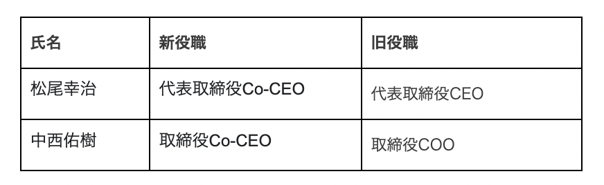 株式会社リチカ(本社:東京都渋谷区 / 代表取締役:松尾幸治/以下、当社)は、経営体制強化のために2023年1月付けで共同CEO制度を導入し、取締役COO中西佑樹が共同CEOに就任したことをお知らせします。
