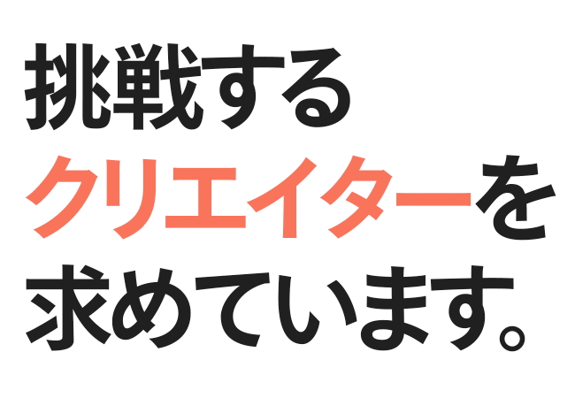 当社では、すでに第一線で活躍してきたクリエイター、デザイナーが大活躍しています。少しでも興味をお持ちの⽅は、ぜひお話しさせてください。